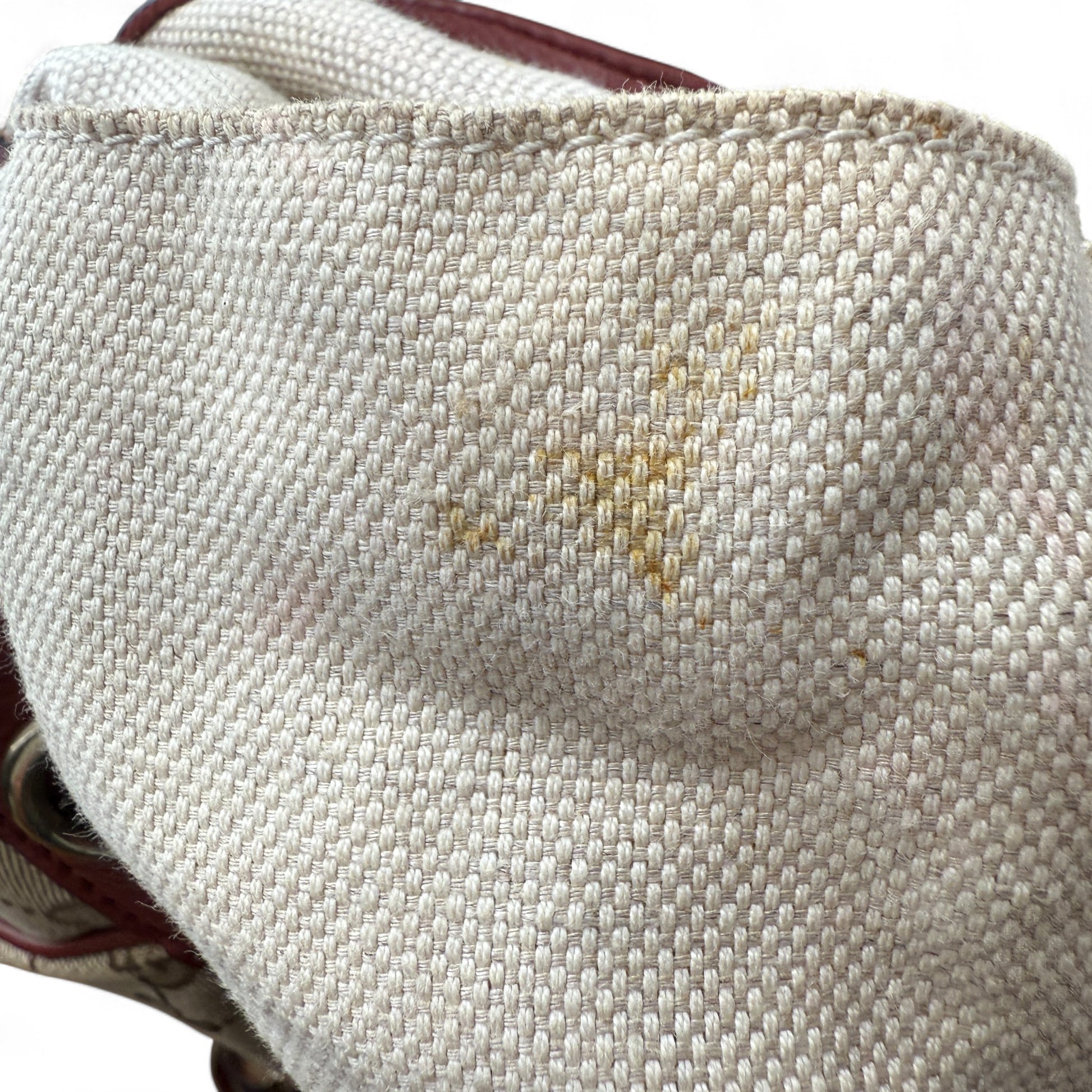 - Info: This previously worn item is in very used condition and may show visible signs of wear. Any defects such as holes and general signs of wear are clearly visible in the product images. The bag has a distinctive odor. Includes an unbranded gold-colored cherry charm (removable).